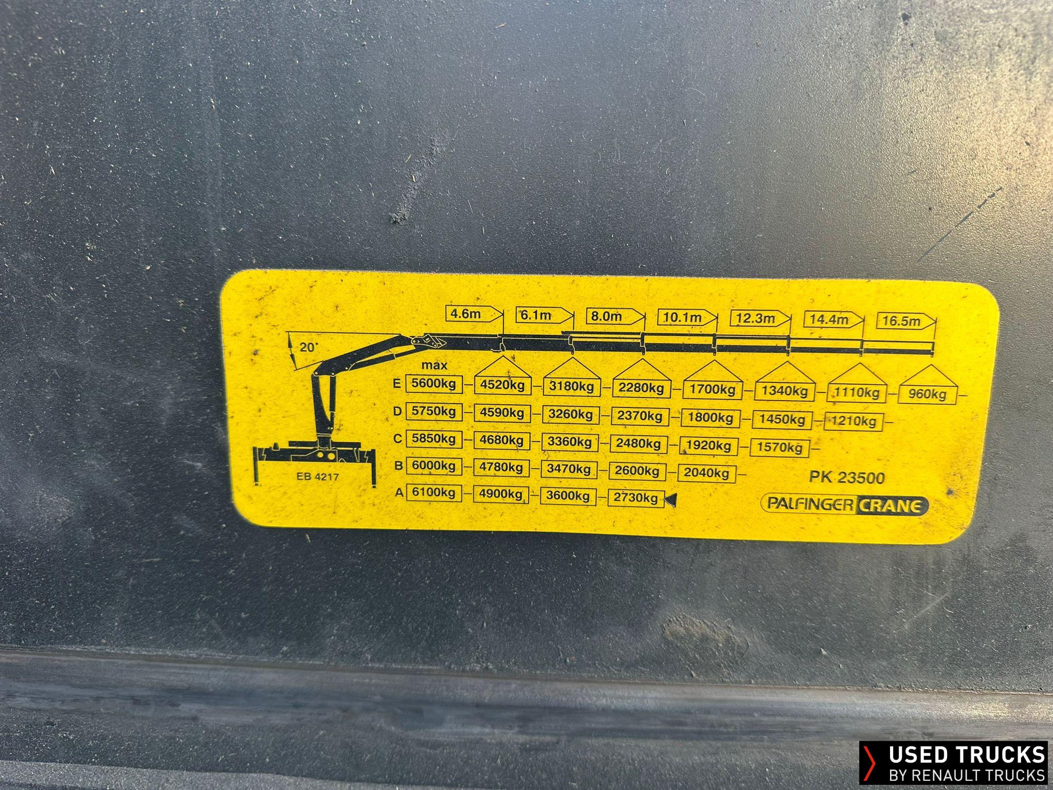 2 PLACES / RADIO / RALENTISSEUR SUR ECHAPPEMENT / CHRONOTACHYGRAPHE A DISQUE / RETOVISEURS DEGIVRANTS / GRUE PALFINGER PK 23500 2 RALLONGES + ROTATOR 2,73T A 8 METRES RADIOCOMMANDEE / SUSPENSIONS ARRIERES PNEUMATIQUES