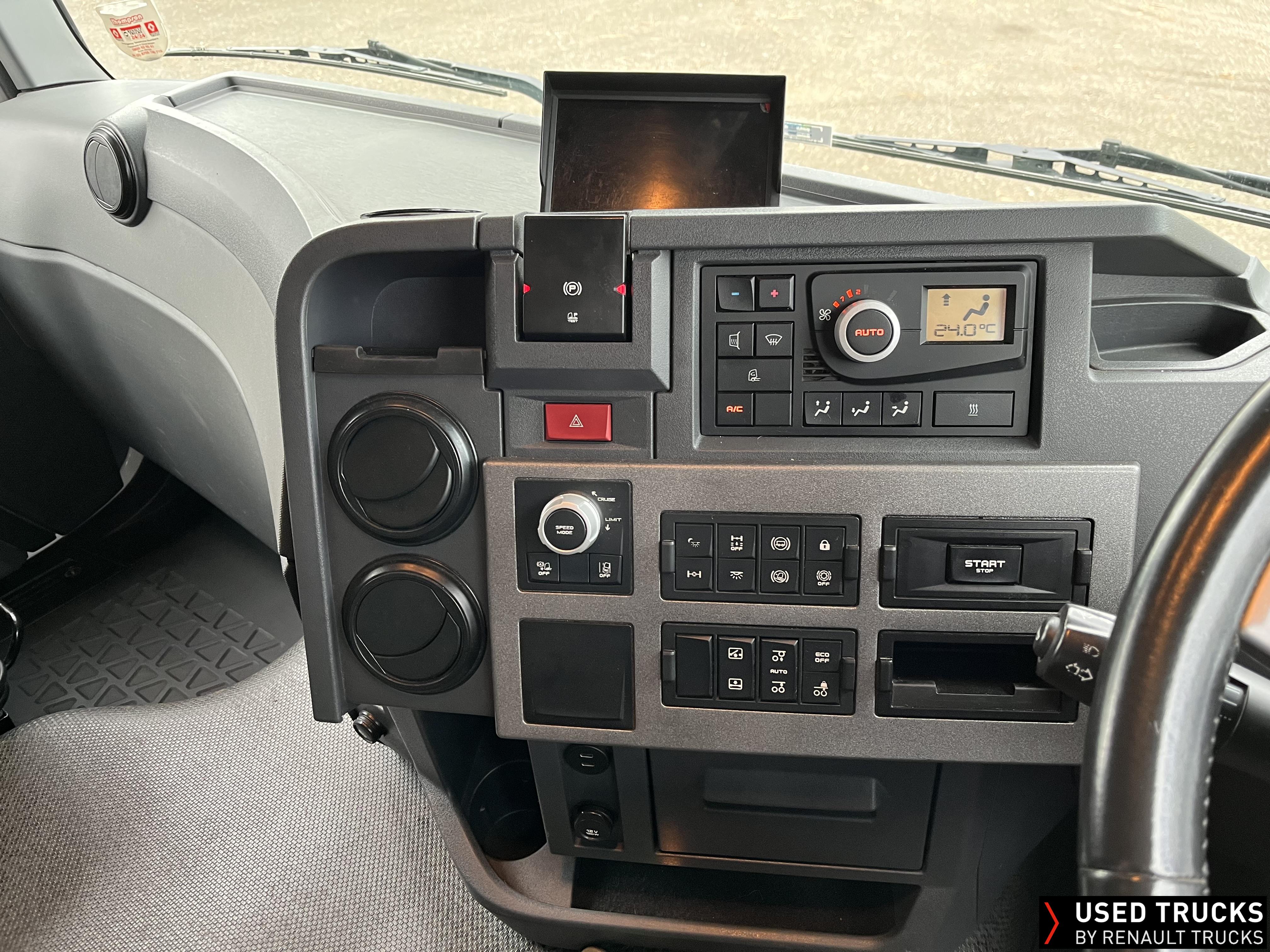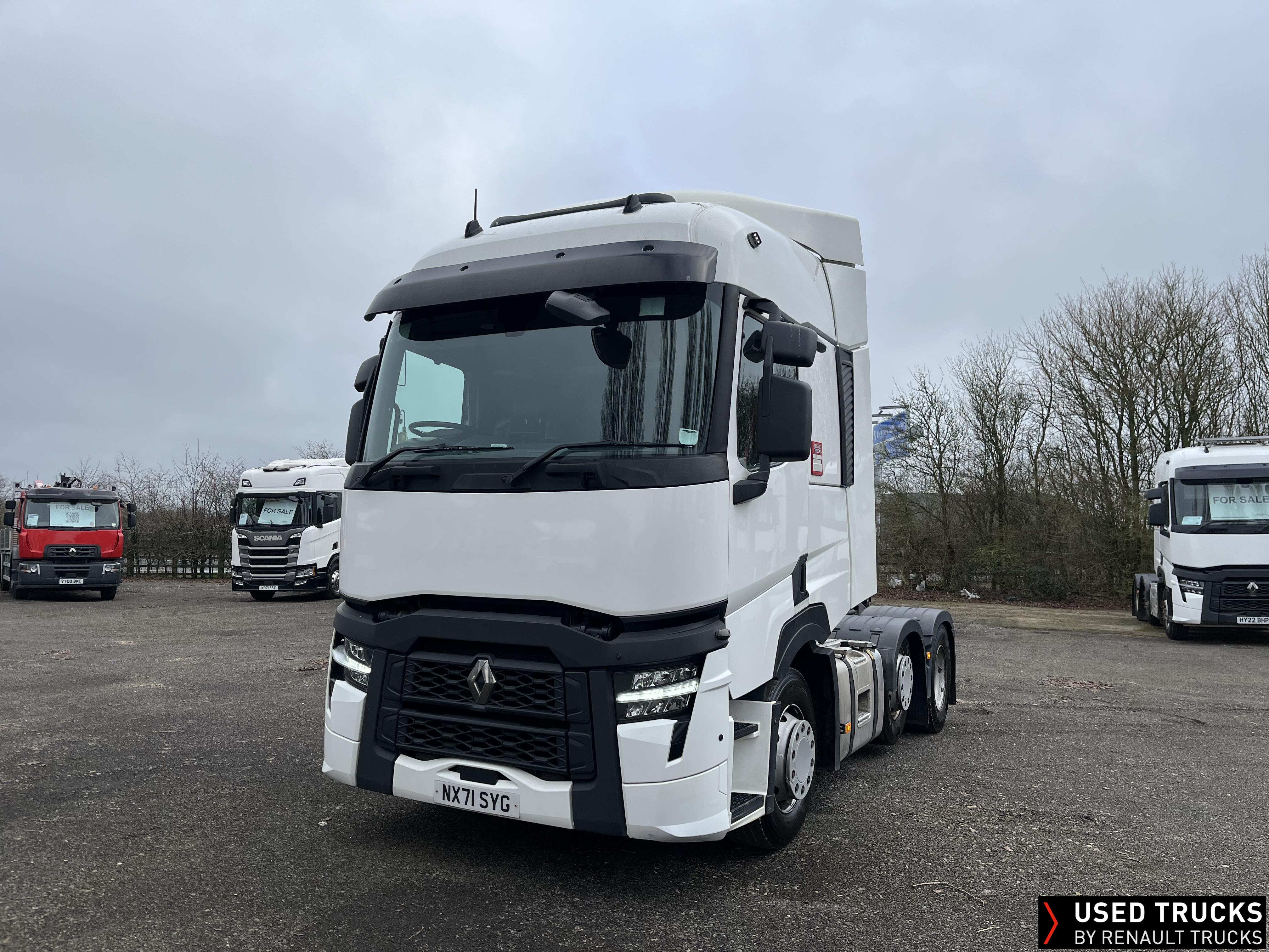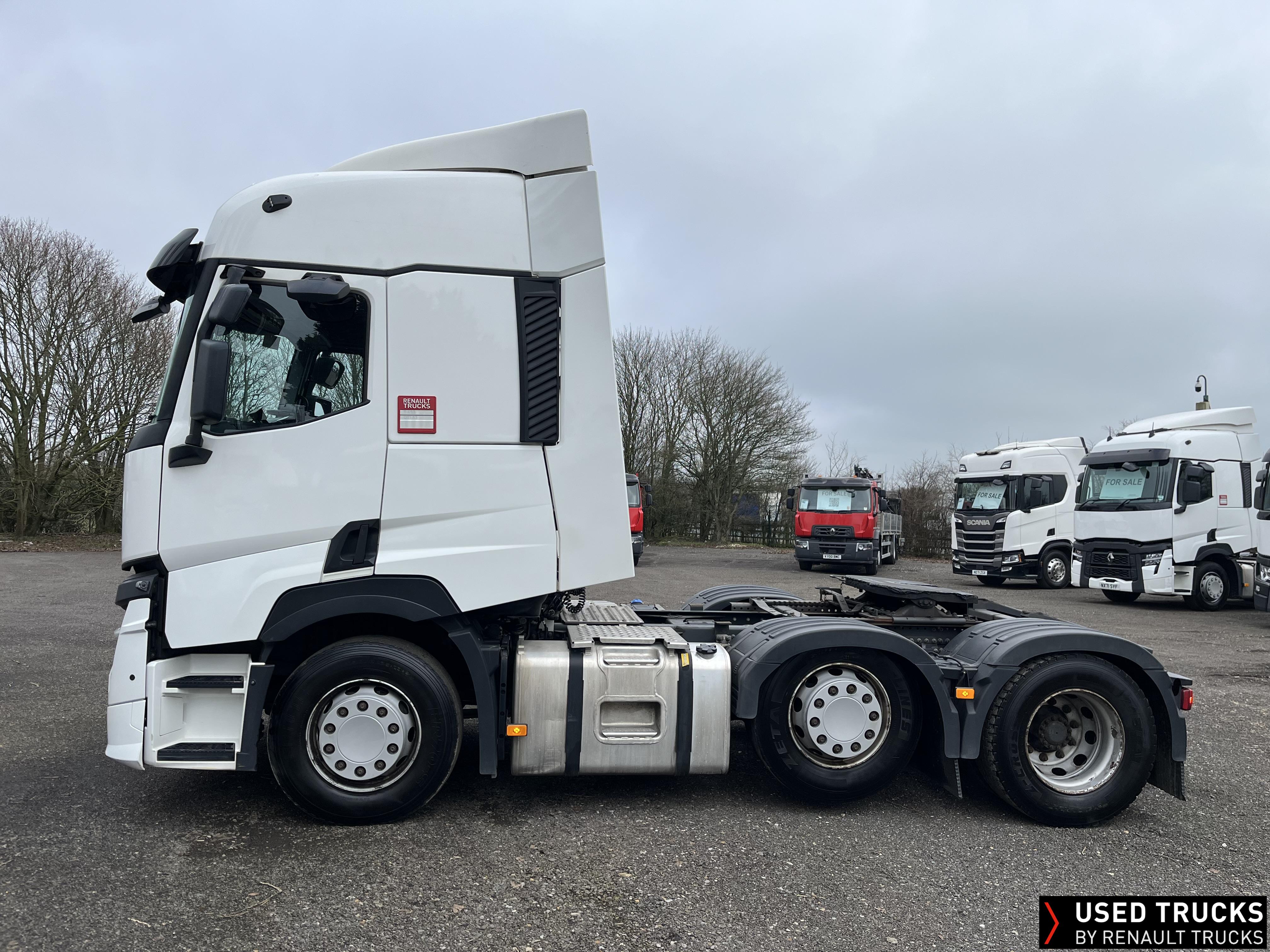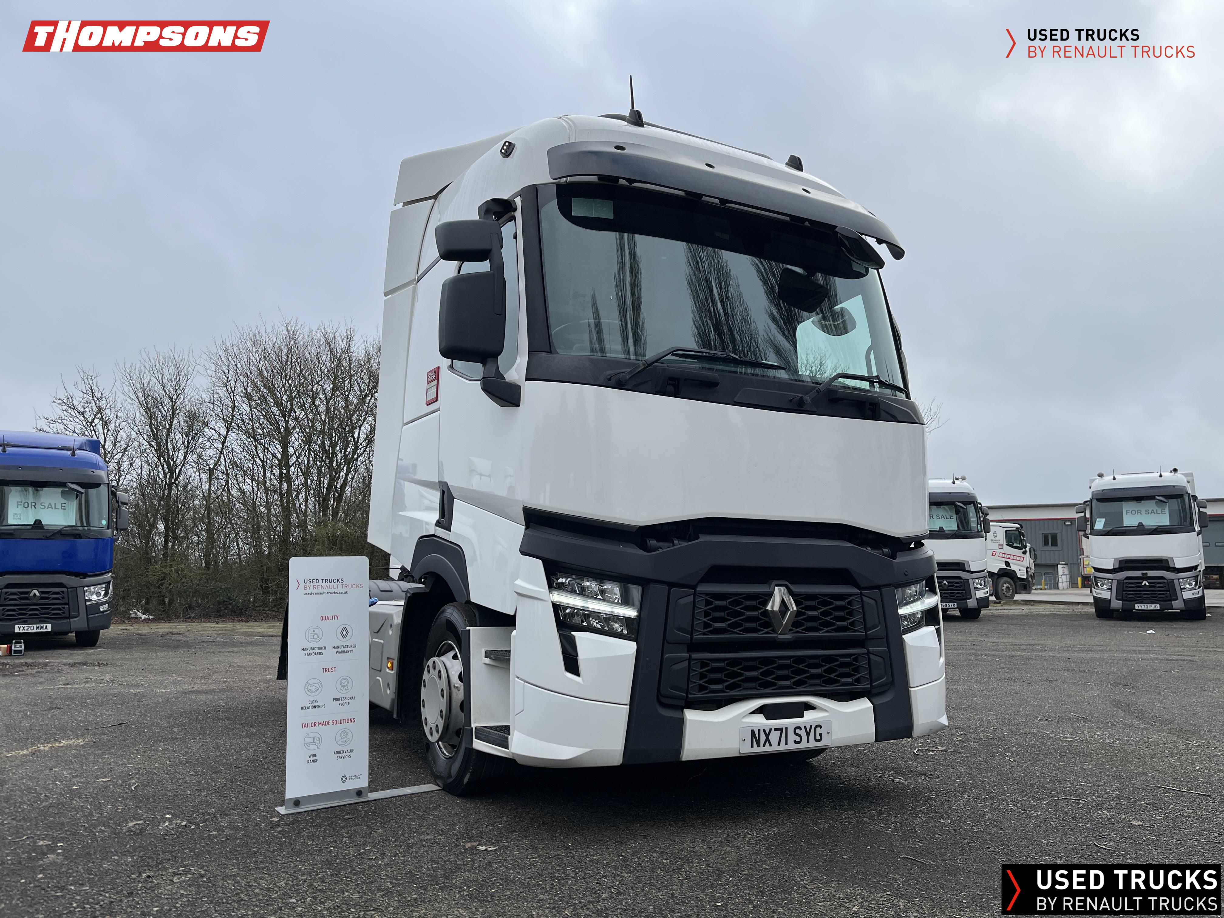 2021 (71) Renault T 480 Evolution TML 6x2 Tractor Unit, with just 490,388kms. Sleeper Cab, 13 LTR 480 BHP Euro 6 Engine & Automatic Gearbox, Engine Brake, Fridge Fitted in Under Bunk Draw , Sunvisor, Cruise Control with Optiroll, Lane Departure Warning System, Emergency Brake Assist, Electronically Regulated Comfort Air Conditioning, Electric Windscreen Sunblind, LED Cab Lighting, FM/DAB+ Radio with Bluetooth, 12/24V Sockets, Sliding 5th Wheel.