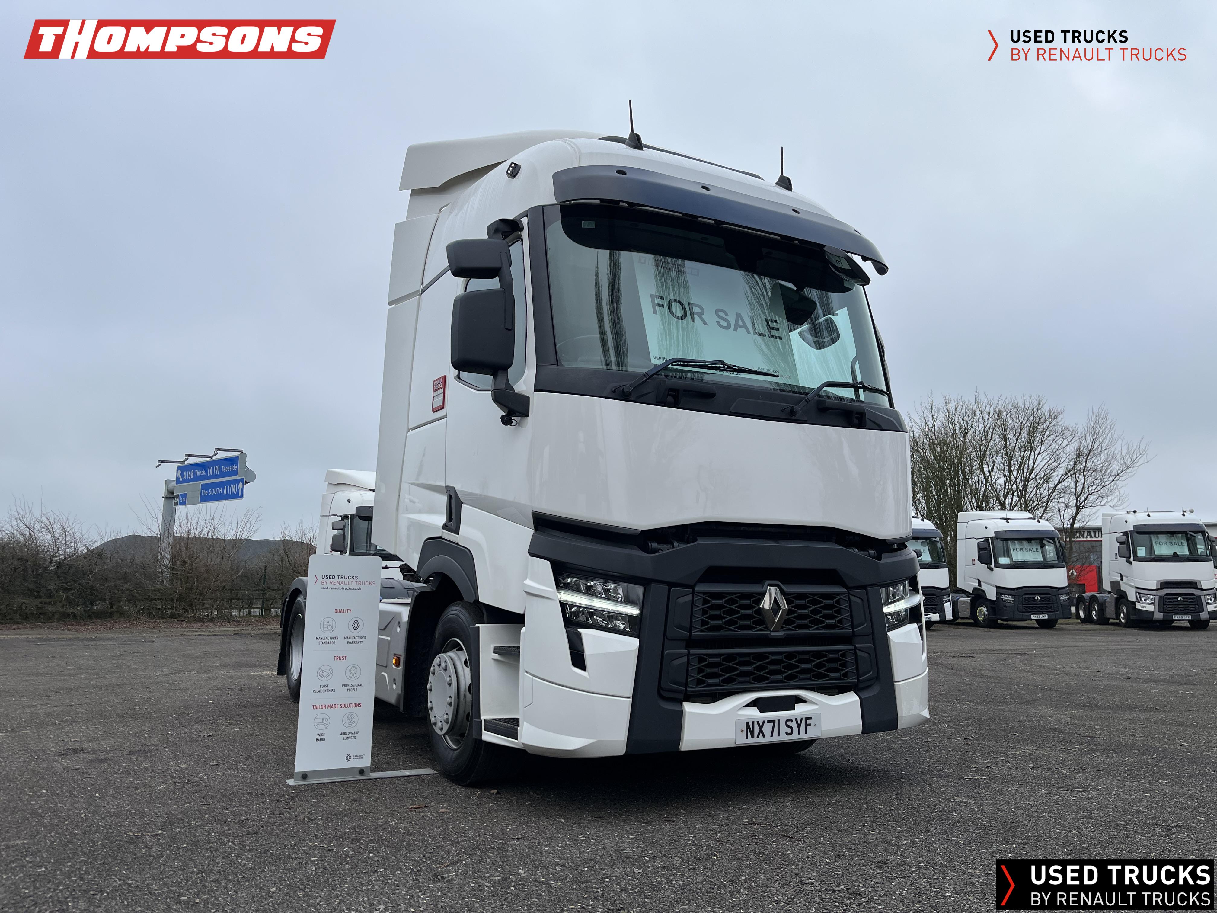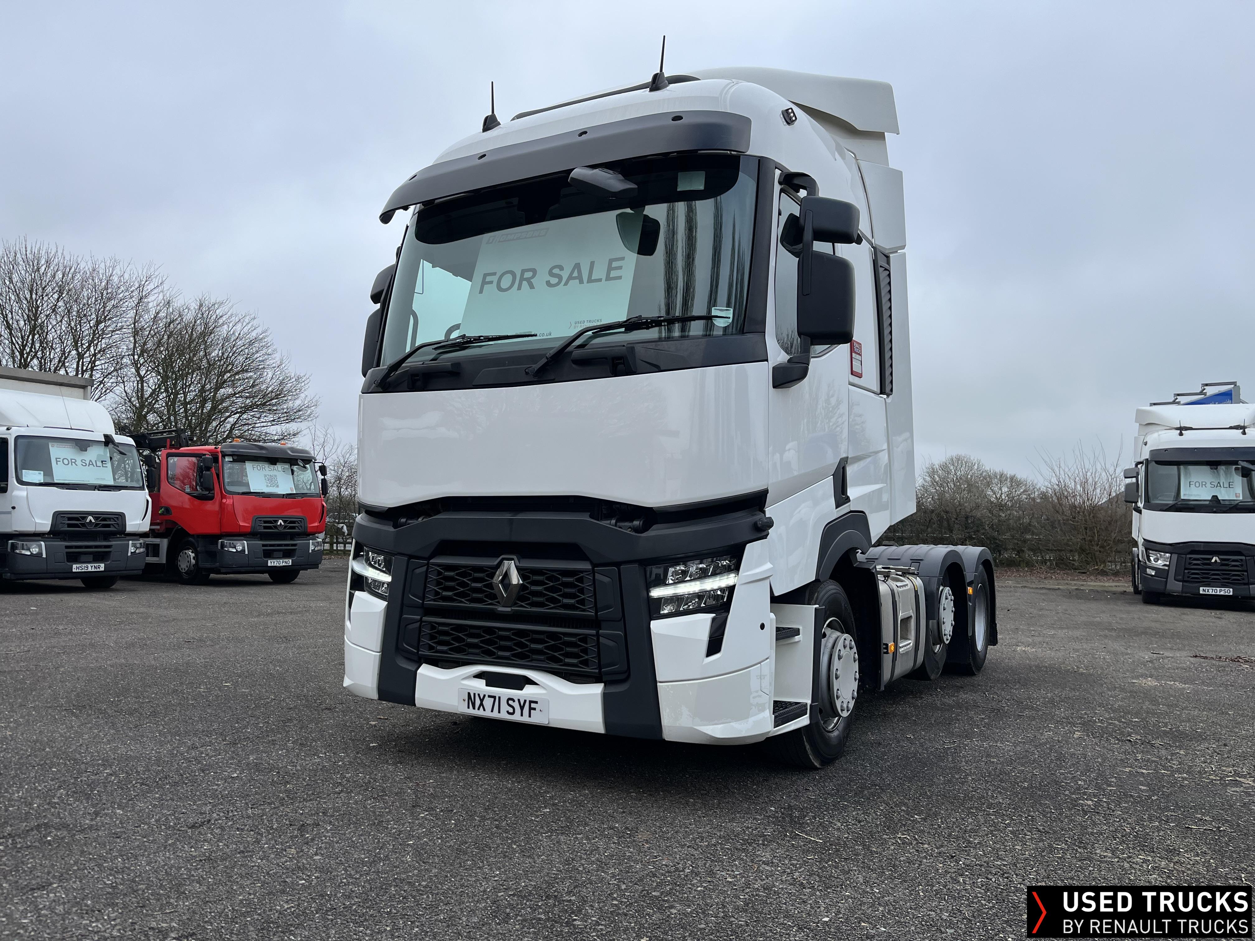 2021 (71) Renault T 480 Evolution TML 6x2 Tractor Unit, with just 471,256kms. Sleeper Cab, 13 LTR 480 BHP Euro 6 Engine & Automatic Gearbox, Engine Brake, Fridge Fitted in Under Bunk Draw , Sunvisor, Cruise Control with Optiroll, Lane Departure Warning System, Emergency Brake Assist, Electronically Regulated Comfort Air Conditioning, , LED Cab Lighting, FM/DAB+ Radio with Bluetooth, 12/24V Sockets, Sliding 5th Wheel.